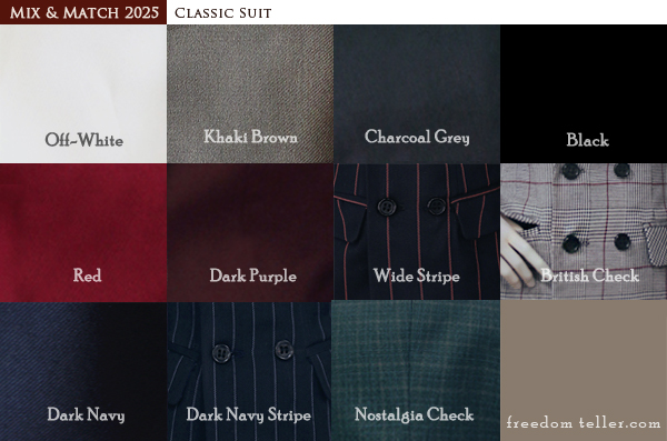 ³²¾Æ Ŭ·¡½Ä ¼öÆ®·ùÀÇ ¹Í½º& ¸ÅÄ¡ ("Mix & match") ÀÔ´Ï´Ù. ÀÌ Ä«Å×°í¸®¿¡¼ ÁÖ¹®ÇϽøé ÀÚÄÏ,Á¶³¢,¹ÙÁö¸¦ °¢°¢ ¿øÇϽô »ö»ó°ú ÆÐÅÏÀ¸·Î ÁÖ¹®ÇϽǼö ÀÖ½À´Ï´Ù. ÀÚÄÏÁÖ¹®Àº ÇʼöÀ̸ç, Á¶³¢¿Í ¹ÙÁö´Â ¿É¼Ç¼±ÅÃÀÔ´Ï´Ù. ÀÌ Ä«Å×°í¸®¿¡¼ ÁÖ¹®ÇϽô ¹ÙÁö´Â ¸ðµÎ ½½¸²ÇÍ (¹ß¸ñÀ» »ì¦ µ¤´Â±âÀå)À¸·Î ÁøÇàµË´Ï´Ù. ±âÀåÃß°¡¸¦ ¿øÇϽô °æ¿ì¿¡´Â µû·Î ¸Þ¸ð¸¦ ³²°ÜÁֽñ⠹ٶø´Ï´Ù. *»ö»óÀº ¾Æ·¡ »ö»óÇ¥¿Í Tailored -> Gallery ÀÇ »ó¼¼»çÁø ÂüÁ¶¹Ù¶ø´Ï´Ù* *ÀÌ À̺¥Æ®ÀÇ °¡°ÝÀº Tailored Ä«Å×°í¸®ÀÇ ¼öÆ®°¡°Ý¿Í ¾à°£ÀÇ Â÷À̰¡ ÀÖÀ»¼ö ÀÖ½À´Ï´Ù!.*
